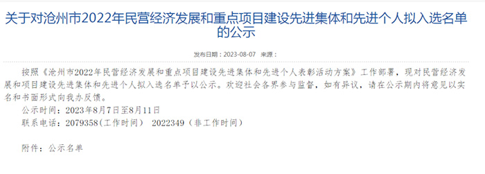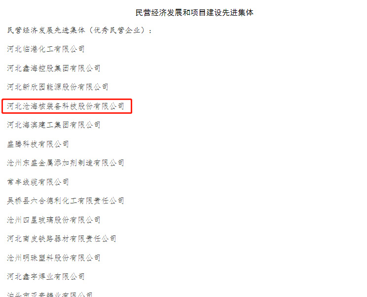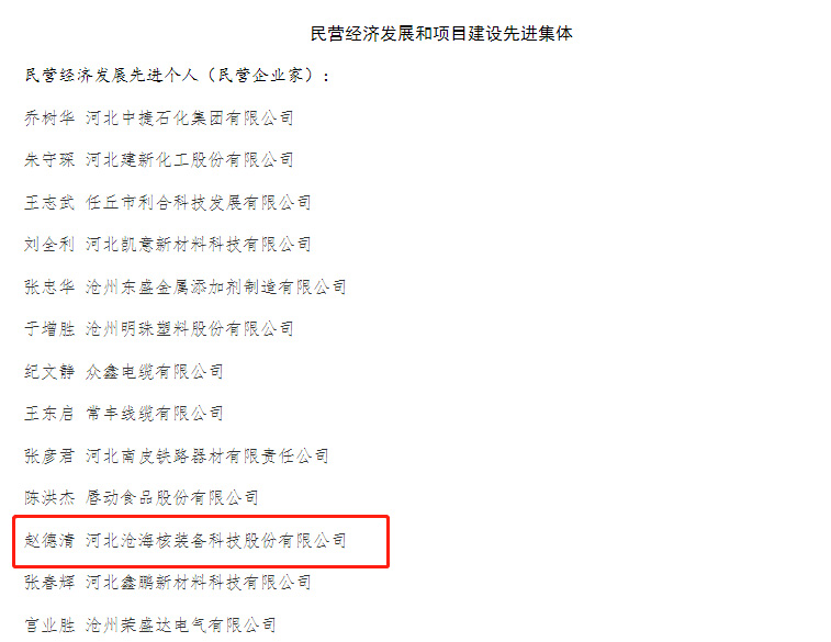 近日,河北滄海核裝備科技股份有限公司榮膺“2022年度滄州市民營經(jīng)濟發(fā)展優(yōu) 秀企業(yè)”榮譽稱號,董事長趙德清獲民營經(jīng)濟發(fā)展先 進個人稱號。