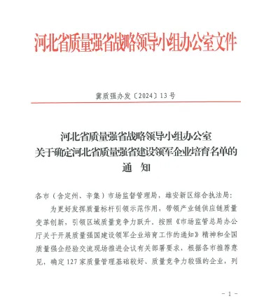 該資質旨在更 好發(fā)揮質量標桿引 領示范作用,帶領產業(yè)鏈供應鏈質量變革創(chuàng)新,引 領區(qū)域質量競爭力躍升。入圍該名單標志著公司質量管理基礎較好,質量競爭力較強,在開展質量分析、實施標桿管理,不斷追求卓 越等方面優(yōu)先獲得資源支持,助力企業(yè)不斷提高質量管理水平和質量競爭力。