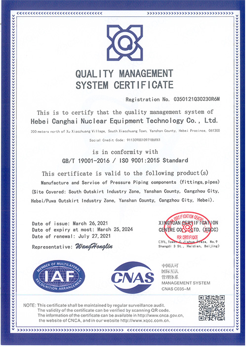 河北滄海質(zhì)量管理體系認證證書(英文)